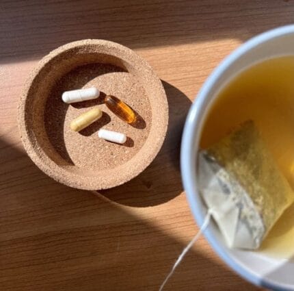 Food supplement with vitamins, minerals, essential fatty acids, and plant extracts for general well-being.